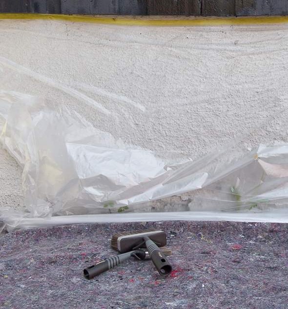 Dekk og masker. Ved å maskere rundt vindusruter og dører, dekke til terrassegulvet og grunnmur, slipper du å bruke tid på å fjerne malingsøl.