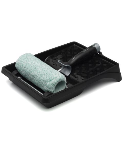 Bruk rull på forlengerskaft på resten av flaten. Påfør lim litt utenfor streken