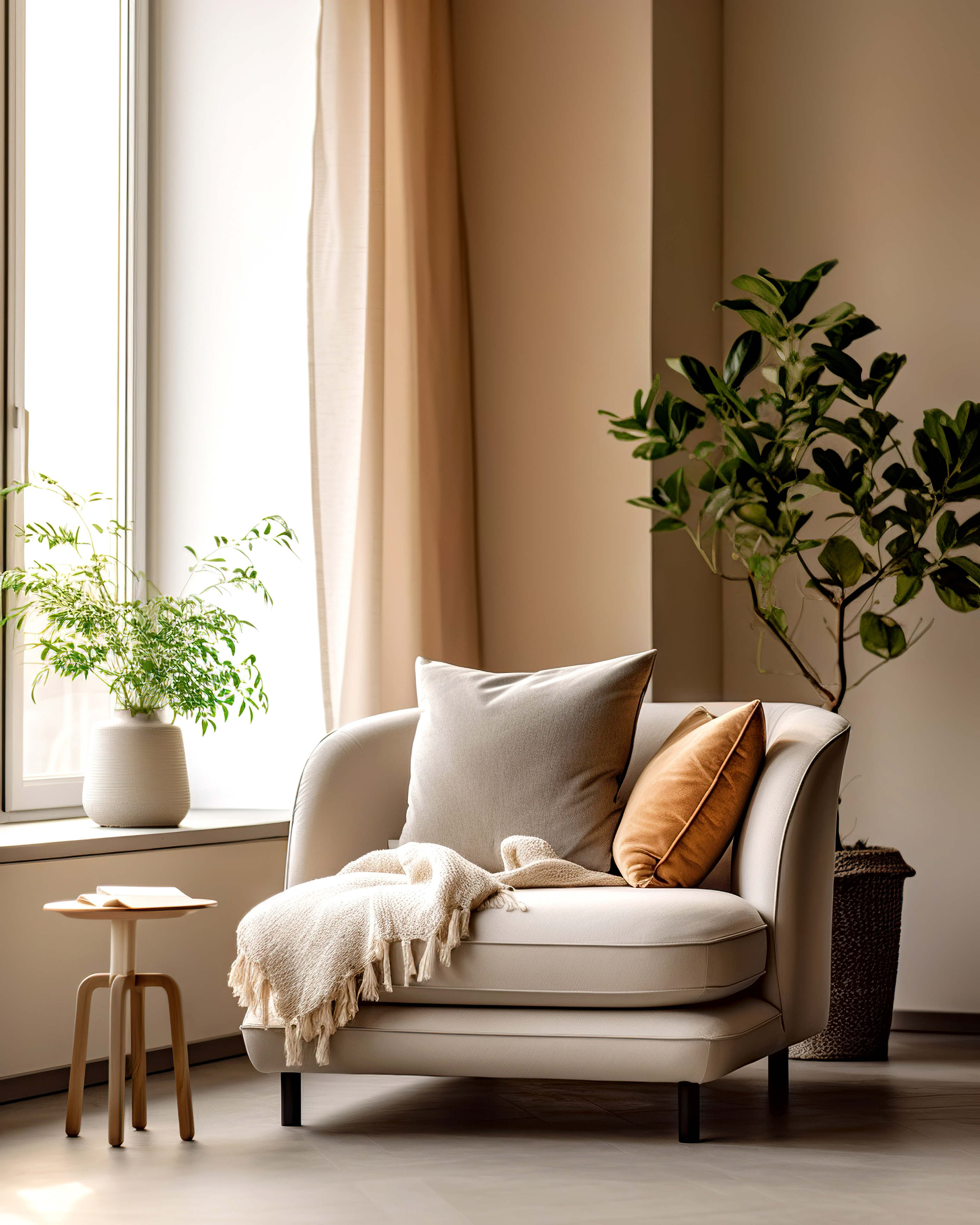 Hvitt og grått har lenge vært en sikker base i norske hjem, men nå er det varme nøytraler som gjelder: beige, sandtoner, myke gråbrune nyanser og kremfarger. Lyse toner av beige, grønt og dempet blått tar i økende grad over rollen som basefarger. Resultatet er rom som oppleves både roligere og rikere, uten å bli tunge.